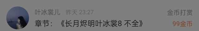 作者“感谢宝贝儿打赏的金币。”