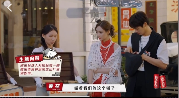 春花:不是,我们只需要每个人,端着我们的这个铺子,然后吃一口,微笑地说出我们的广告词就可以了