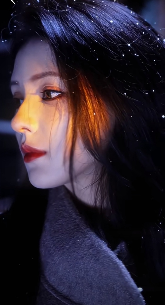 黑暗中,街上的路灯打在她的脸上
