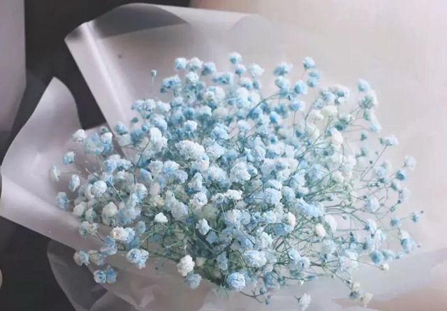 看着完成的捧花,炎玉又去一个花区,剪下了一点蓝色和白色的满天星。