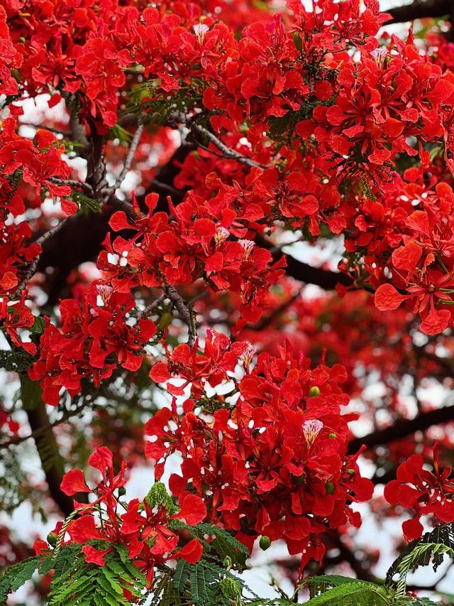 不过在水池旁,也就是走廊的角落生长着一棵凤凰木,红艳艳的花冠很宽很大,也很美。