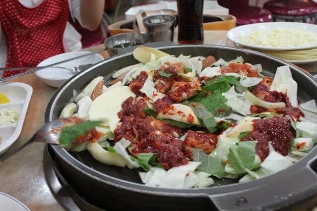 尹恩铭老板!再给我来一份韩国烤肉,一份炸鸡,一份炒年糕一份石锅拌饭,一份调味牛肉,一份冷面,一份酱蟹,还有韩国皮冻,墨鱼汤,辣白菜,寿司.大酱汤,拌饭酱,拌杂菜,泡菜饼各来一份儿,对了,不要掺辣,谢了嗷~