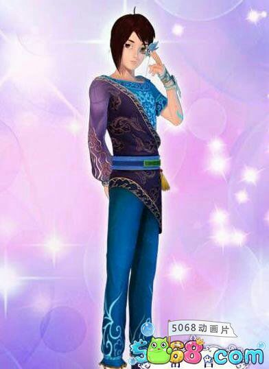 特征:蓝色古装,蝴蝶