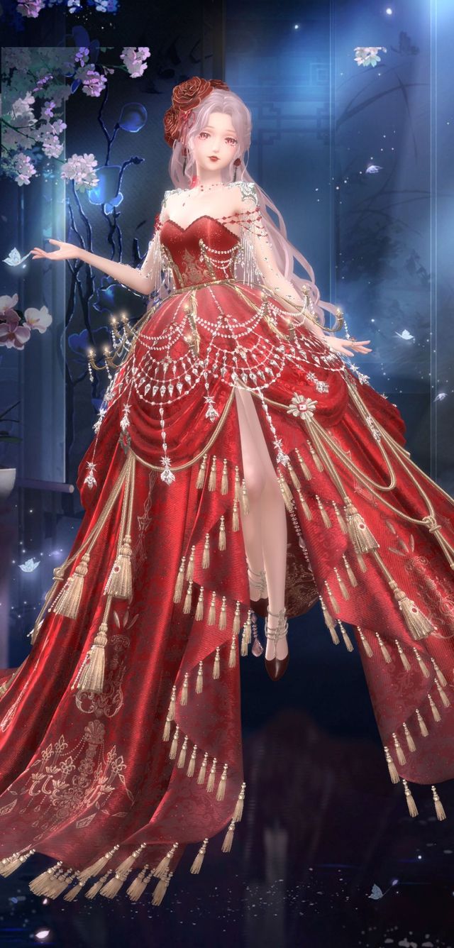 “你看着这样好看吗?我像个暴发户,这上面的宝石和不灵不灵的小钻石入了得我都眼,但是我还是钟爱大红色”随后金色都礼服变成了红色