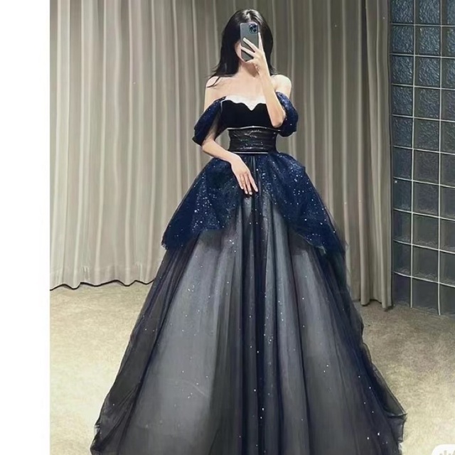 星星点缀其间,裙摆仿佛挽上了银河的臂弯,一层又一层的薄纱层叠围绕,轻盈得就像天边漂浮的云朵。
