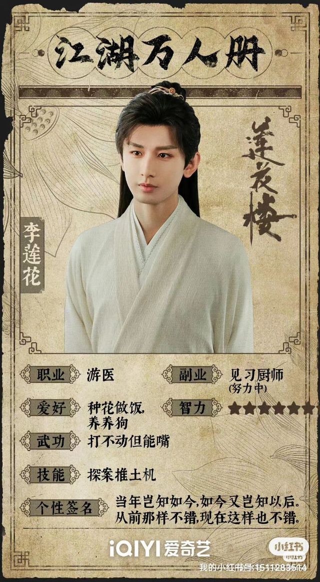 职业:珠城医仙,商人 副业:李莲花金主、鉴茶大师