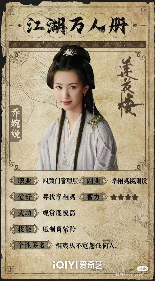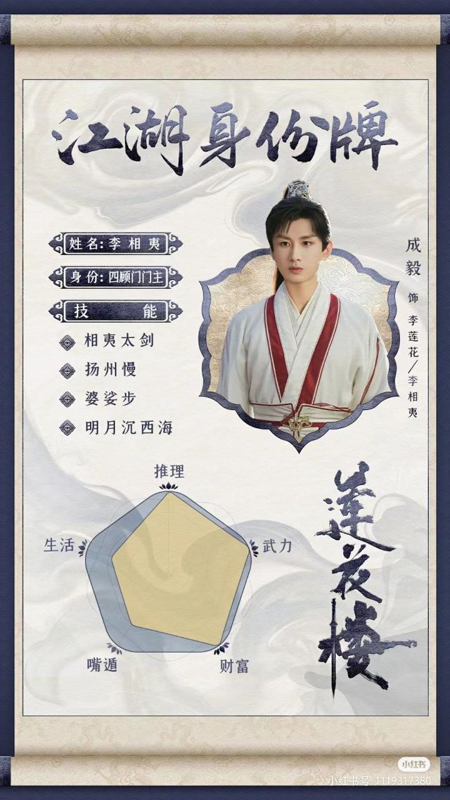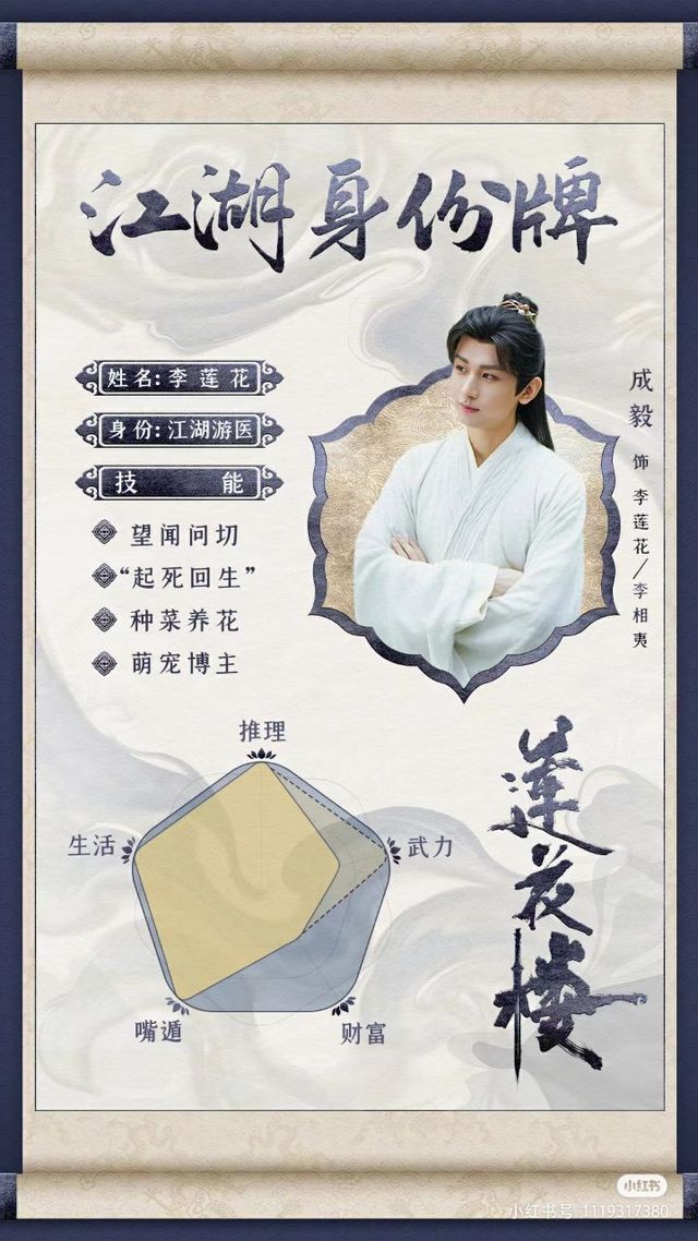 爱好:李莲花、囤钱、 品茶听戏、智力:全书之最(尤其是李莲花遇险受伤)