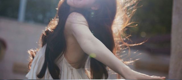 黑茶色的头发搭在肩头,白色的连衣裙上沾着些许灰尘
