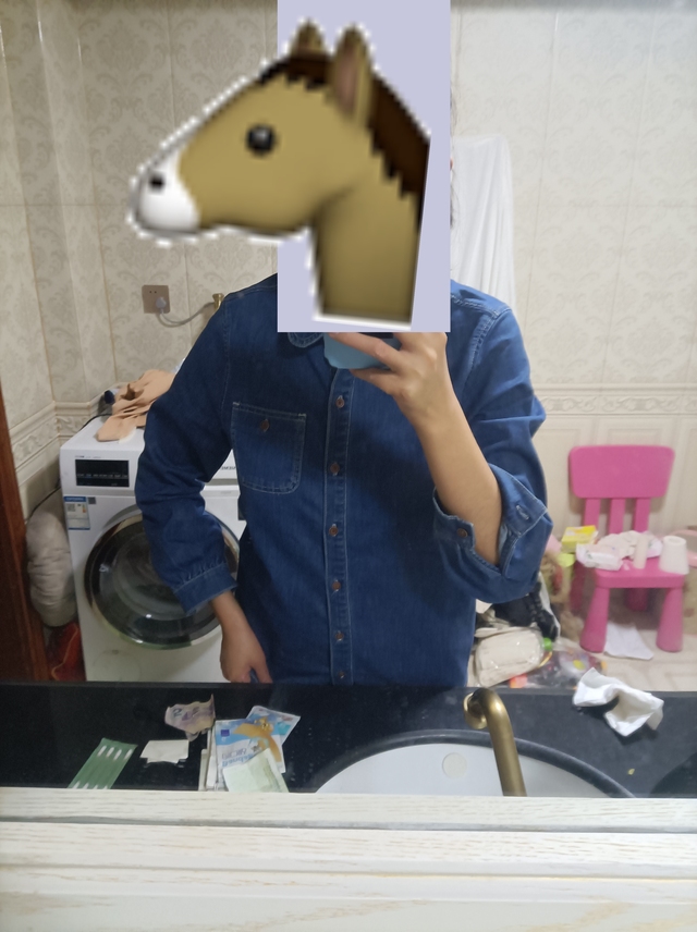 我晚上倒没感觉多冷,不过穿衣服的时候就意识到如果今天外套里还只穿短袖一定会冻死,翻了半天发现衣柜里只有短袖,没办法了求助老母亲获得了一件牛仔上衣,蛮好看的,一点都不紧但显得上半身身材很好的样子