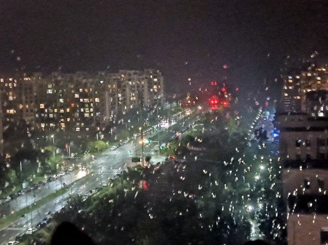 (附上家窗外的雨天夜景)
