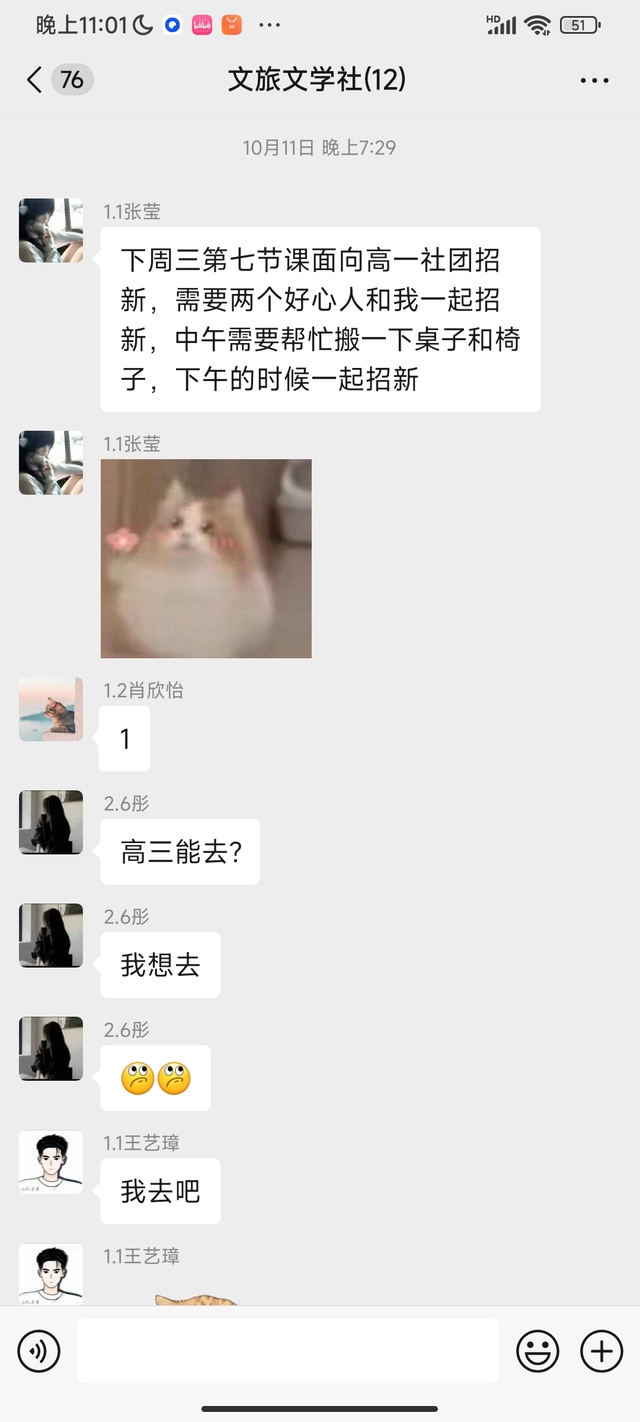 其实已经没那么疼了但不太想学习。随便刷手机看到周日的时候文学社发了招生活动的消息,我直接当成班群信息忽略了