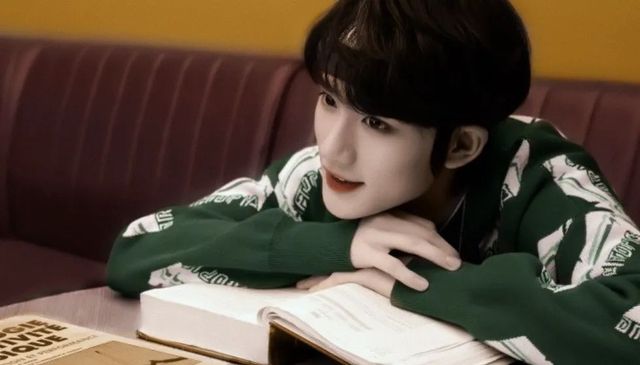 我在书桌上写题目,丁程鑫就搬一张椅子坐到我旁边,在看他自己带来的书