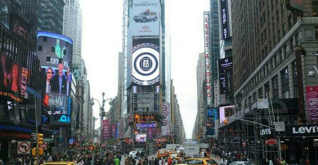 纽约因圣诞节的即将到来使得时代广场显得异常拥挤,许多人都在街道上狂欢着。