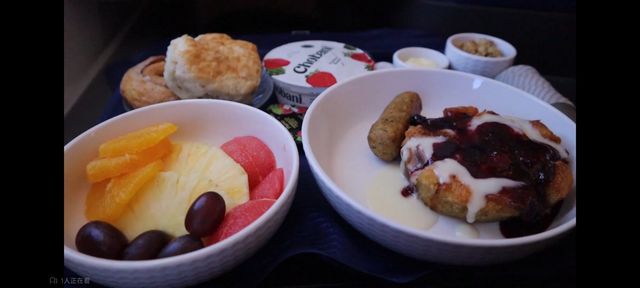 转头一看父母那边,爸爸点的是蛋饼套餐,妈妈不想吃这些,便选择了玉米片,她则是健康谷物套餐,接着各自调整座椅做自己的事情了。
