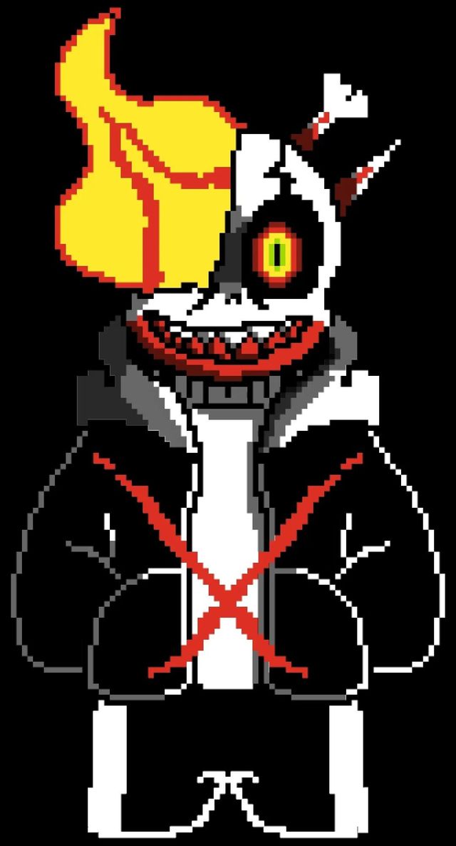 uIbsans在第30条屠杀线中,Sans像往常一样在岗哨站打盹,这时一个身影出现在他的幻想中。Sans认出了这是谁,同时他被告知Frisk打算永远把怪物当作TA的傀儡并屠杀他们。起初,Sans怀疑了并拒绝相信这一点;Gaster随后在Sans的脑子里重新浮现了过去屠杀的时间线。Sans现在完全相信了,他准备好去面对Frisk,并从Gaster那里接受训练课程。在杀死所有人之后,Frisk在最后走廊里遇到了Sans。Sans告诉了TA他知道的一切,并试图让TA充满罪恶感,但失败了。别无选择,Sans全身心地投入战斗。在筋疲力尽之后,Sans撒谎告诉Frisk还有一种方法可以走一条更好的道路,并“给予”TA仁慈。如果TA选择战斗,Sans就会被TA的刀击中。然后他自言自语说为什么现在大家都认为他是懒惰的懒鬼,因为它终究会被抹去。Sans后来意识到他没有化为尘埃,他还有0.0001点生命值。Sans拒绝认输,他召唤一根骨头来保护自己,并再次愤怒地攻击,同时试图用武力让TA重置。很快,Frisk又一次把他累坏了,Sans摔倒在地,等着再次被击中。但是,某只手保护了他,之后的刀击没有效果。Sans现在知道谁在那里。他让某个已确定的人接管他,损毁他的脸,并在他的头部右侧形成一条裂缝,直达眼睛。然后他盲目地像疯子似的攻击,希望彻底地结束一切。最终,Sans终于失去了魔力。因为他看起来希望能有更好的结果,Frisk设法第二次击中了他。Sans看起来好像要停止微笑了,但还没来得及就化为尘埃。