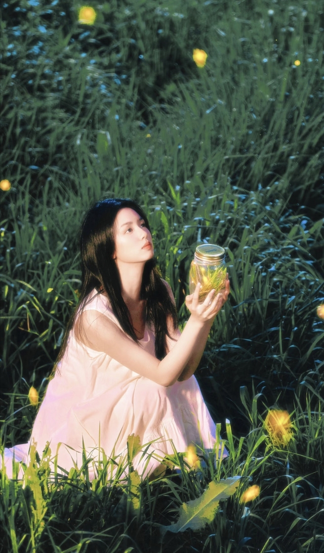 她坐在萌学园大电影外的小树林里面。