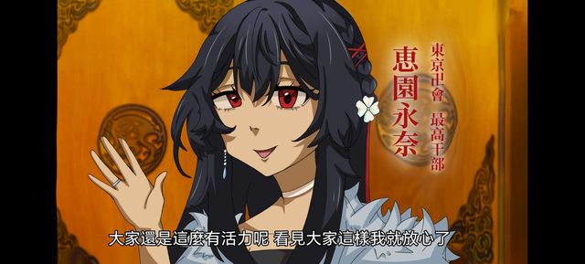 直到唏咲进来,众人都纷纷行礼只有武道和永奈坐在座位上,永奈甚至头都不抬一下,唏咲没有看向永奈只是对着武道和千冬发出邀请