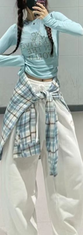 (全体爱豆都看着这个女孩:一个高高的马尾,蓝色的运动背心半露在粉色棒球服里微露隐隐约约的马甲线,一条休闲的运动裤,黑色匡威运动鞋酷酷的.)