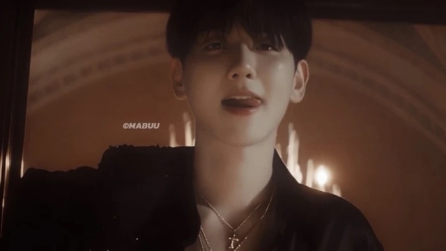 边伯贤穿着黑丝绸的衬衫和西装裤,头发梳得整整齐齐的,脸庞俊美无双,五官深邃立体,嘴角噙着笑容,目光炯炯的注视着我。