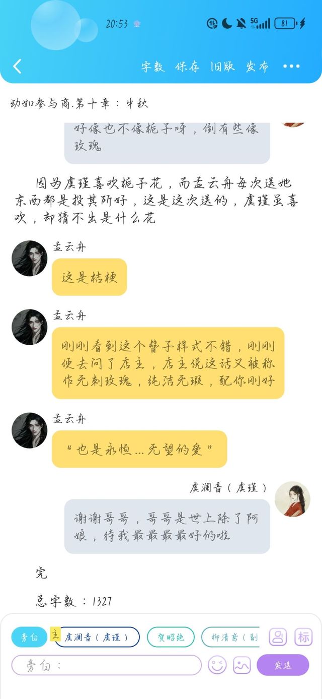 虞澜音(虞瑾)阿鸢,你说这虞老爷到底怎么想的,感觉他好像很信任我