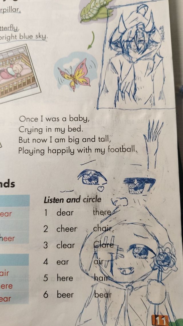 作者唉,最近不舒服,上课摸鱼,结果我把英语书画成了这样子