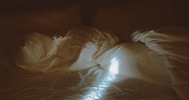 阳光直穿过纱帘,在床边洒下温暖的白光