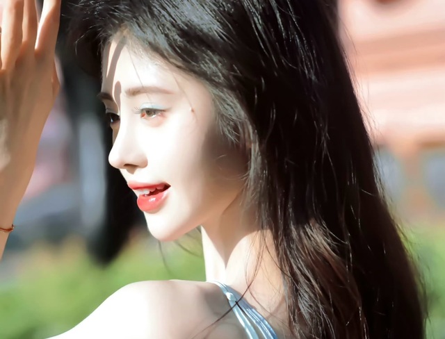 明亮跳跃的光线在她脸上掠过,留下斑驳的光影,使她显得更加明媚动人。
