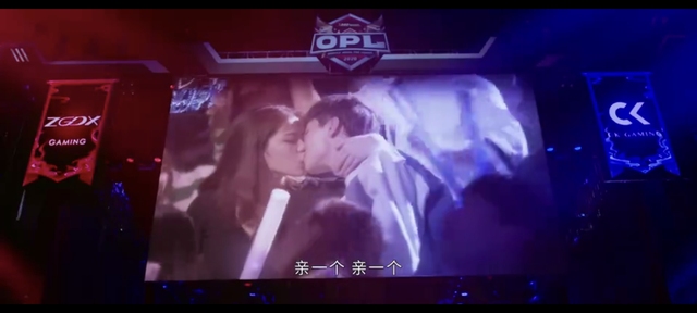 镜头转向另一对情侣,两人先愣了愣,后想起电子竞技职业赛现场观众席上来有“被照到的情侣必须接吻”的莫名其妙的习俗,于是那个妹子笑眯眯的拉过男朋友来了个热情的吻,现场欢呼、哄笑鼓掌,解说,也跟着起哄。