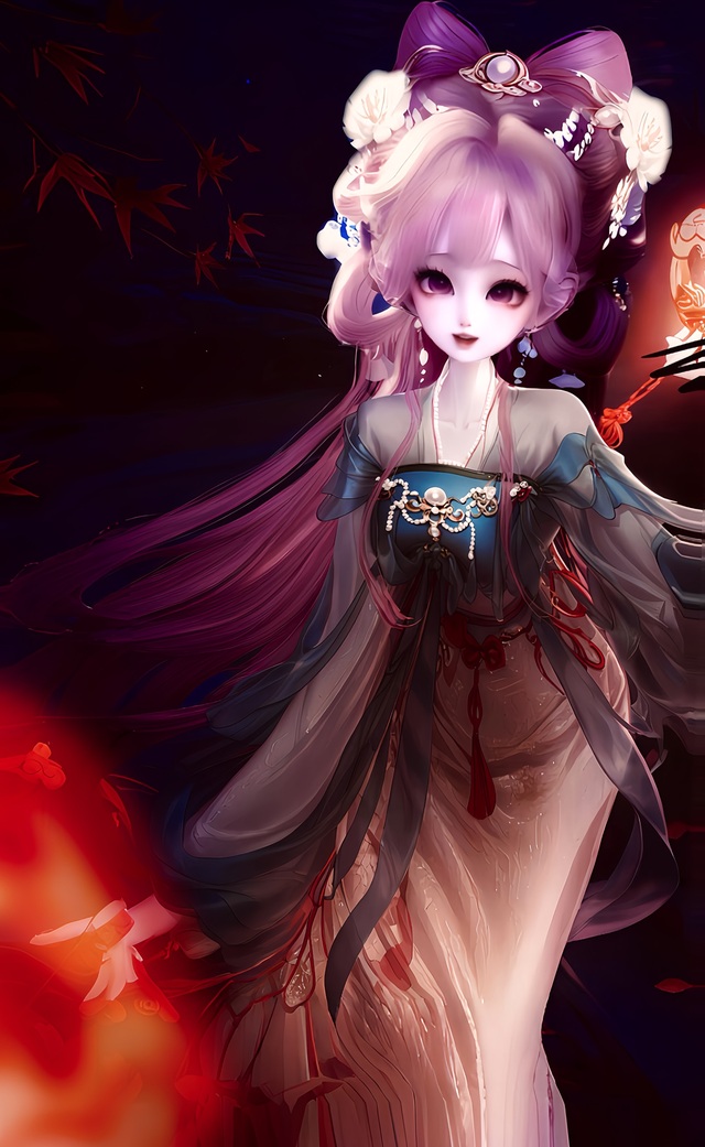 她那如墨的长发在微风中轻轻飘动,精致的侧脸被花灯的光芒映照得愈发柔和,此刻的她,宛如夜空中最璀璨的星辰。