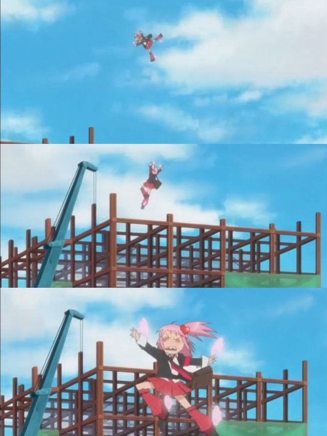 日奈森亚梦似乎还没意识到自己悬在半空,嘴里不忘吐槽着