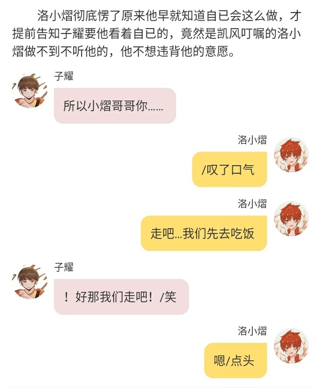 洛小熠“小风这是有多担心我没好好吃饭啊?怎么还派了子耀来盯着我啊?”/轻笑