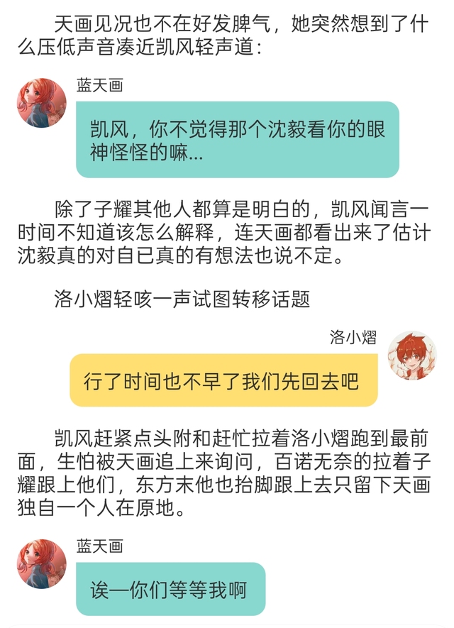 凯风丝毫没有管转身离开了,洛小熠知道凯风是真生气了赶忙追上去,等两人的离开后沈毅才从天台的后门走出来,他悄悄的握紧拳头心中很不滋味,他突然抬头看向天空暗暗下定决心。