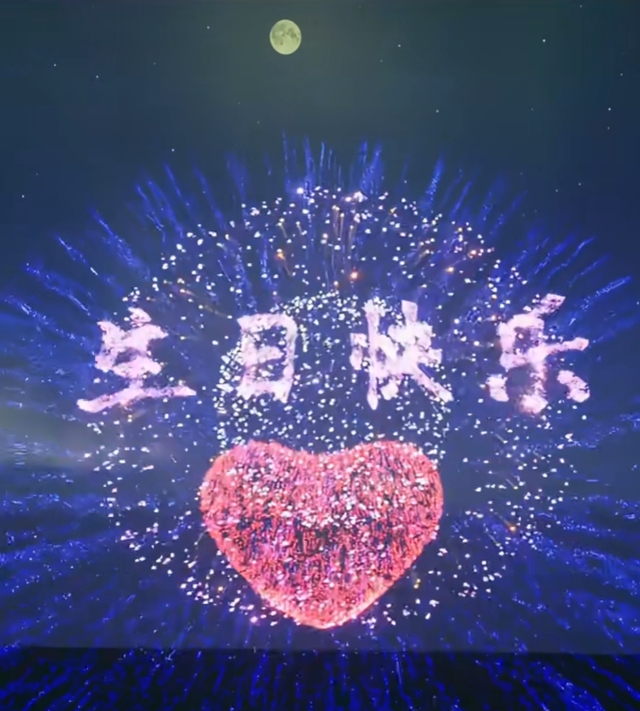 随着龚玥的声音响起,“砰”的一天,天空中绽放出绚烂的烟花,刹那间,宛如天籁之音触动了星辰的脉搏,天空被璀璨的烟火盛宴装点得如梦如幻,每一道光芒都在漆黑的帷幕上绘出了生命的热烈与绮丽。