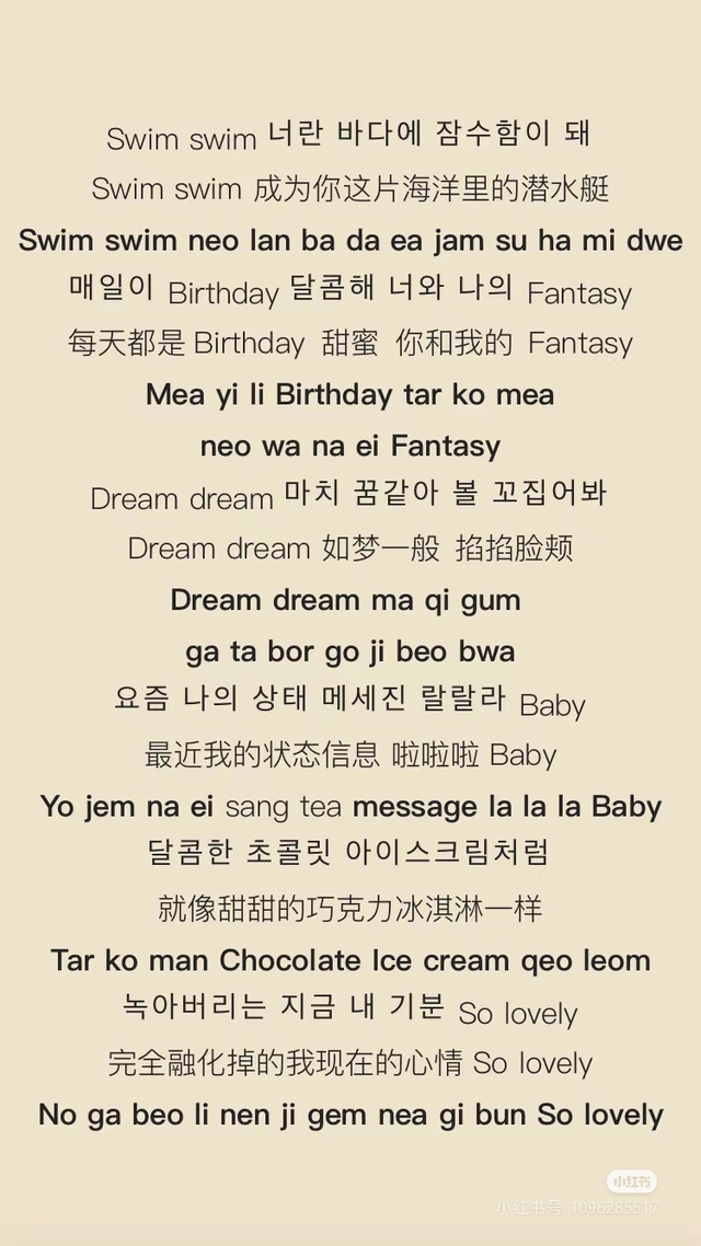 (歌词取自小红书)
