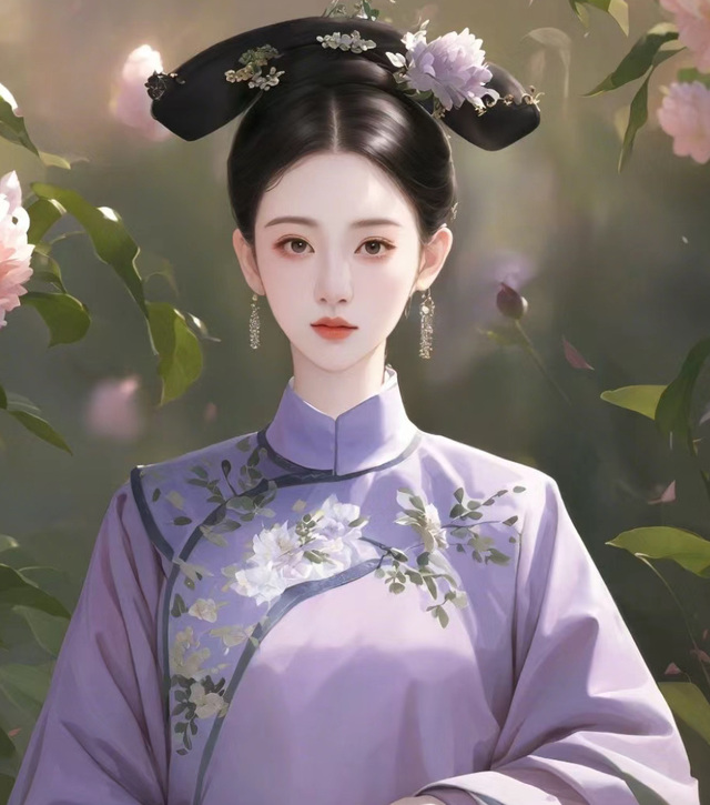 那女子圆圆的脸蛋,大大的杏眼看起来可爱极了,身穿淡紫色旗服,梳着标准的满人旗头