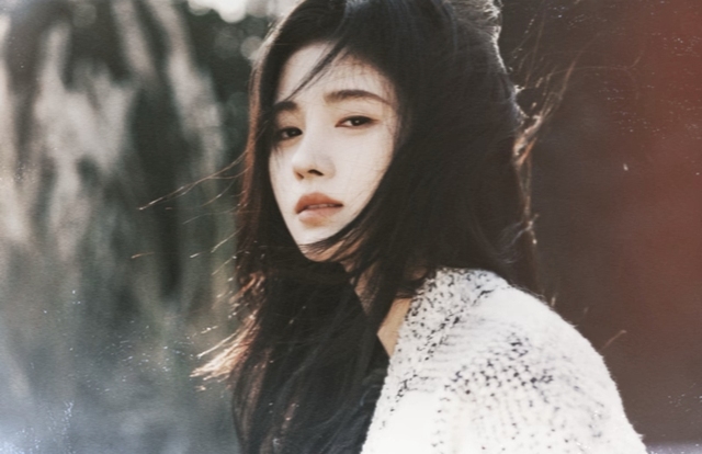 她在石阶上伫立,衣袖飘飘,发丝飞扬.一身清冷,深邃的眼眸里泛着悠悠华光,长长卷卷的睫毛冷凝着寒霜.