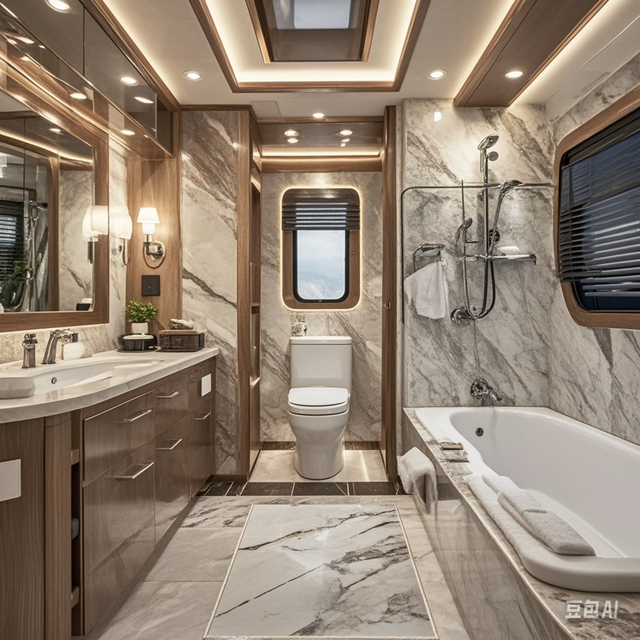 由于是车头位置的上方,格局略有不同,但该有的都有,还多了个小露台。