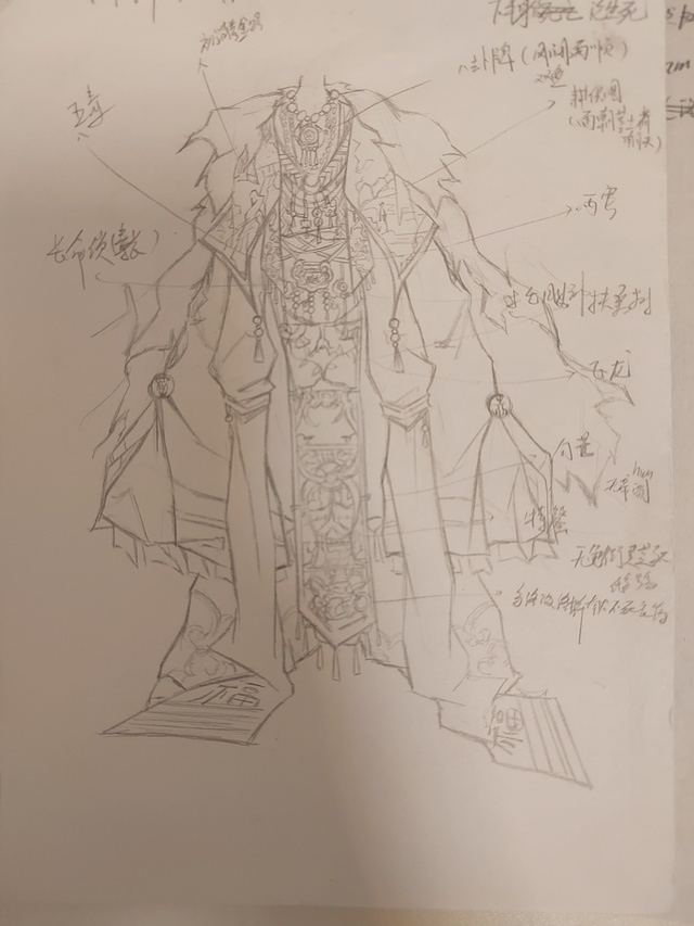 披风代表抵御寒冷与风暴,象征砥砺前行,中间的挂饰上是锄头锤子铜钱齿轮,代表农民工人商人匠人四个身份,长命锁意味长命百岁,下面是辛追夫人墓里的帛图,有改动,其实就是论生死但是太多了说不清楚,回头有机会单独发另一本书里吧