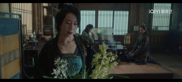 雾姬夫人背对着他们,将兰花摆在桌上,面露不悦,但语气倒也客气。