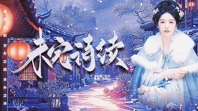 她身披一袭月白色的锦衣,于凛冽的风雪中更显娇弱。