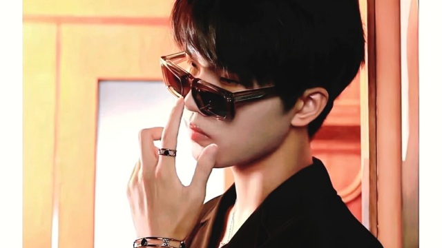 他穿着一件黑色的修身西装,系着一条酒红色领带,整个人散发着神秘又高贵的气质。