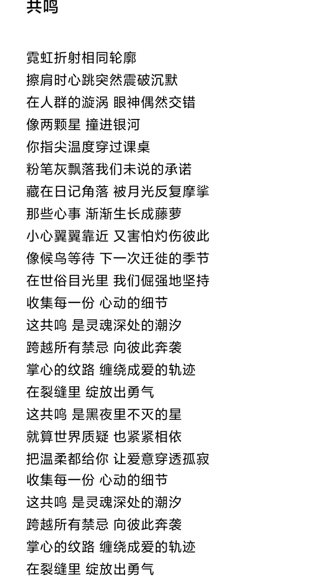 经过无数个日夜的努力,这首凝聚着两人心血的歌曲《共鸣》终于诞生。歌曲上线的瞬间,便如同一颗重磅炸弹,在音乐市场掀起了巨大的波澜。凌星辙充满力量感的嗓音与苏熙阳温柔细腻的声线相互交织,完美诠释了歌曲中关于梦想、友情与坚持的主题。听众们沉浸在这美妙的旋律中,无法自拔。