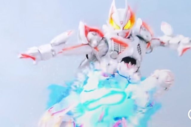 假面骑士炬目(经胸口,肩膀和两个小腿上的浮油泡从装甲上分离,随后对着众人就是无差别扫射)