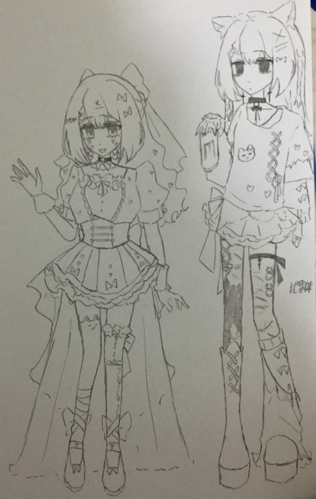 樱落散着长发,扎起两束往后面束起一个草莓红的蝴蝶结;穿着白色泡泡袖裙子,上面还有粉色碎花装饰,红色蝴蝶结在领口十分显眼,肩上腰上的红色飘带随着舞蹈飘起,她还给自己戴上了白色手套;套上了白色堆袜,红结子在袜边。