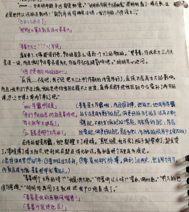 然后我现在发出来的手写稿就是接着这个剧情的手写稿,不是完整的