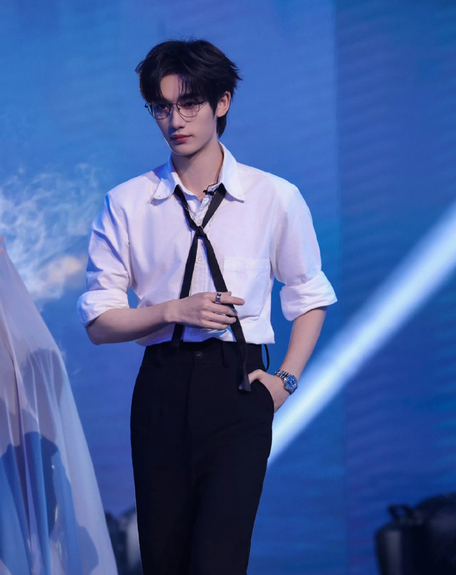 这男人戴一副黑边眼镜,着白色衬衫,黑色西裤,一步一步迈得格外沉稳。