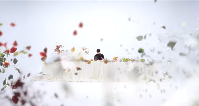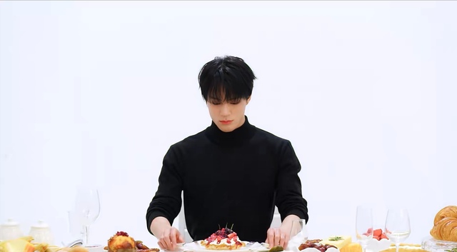 洁白的桌布上压着许多水果、甜点、玻璃杯,杯子里盛着什么东西,他没有看清,视线始终放在面前的一份莓果舒芙蕾上。