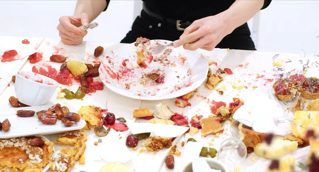 终于,盘子空了,桌子也成了一片狼藉。