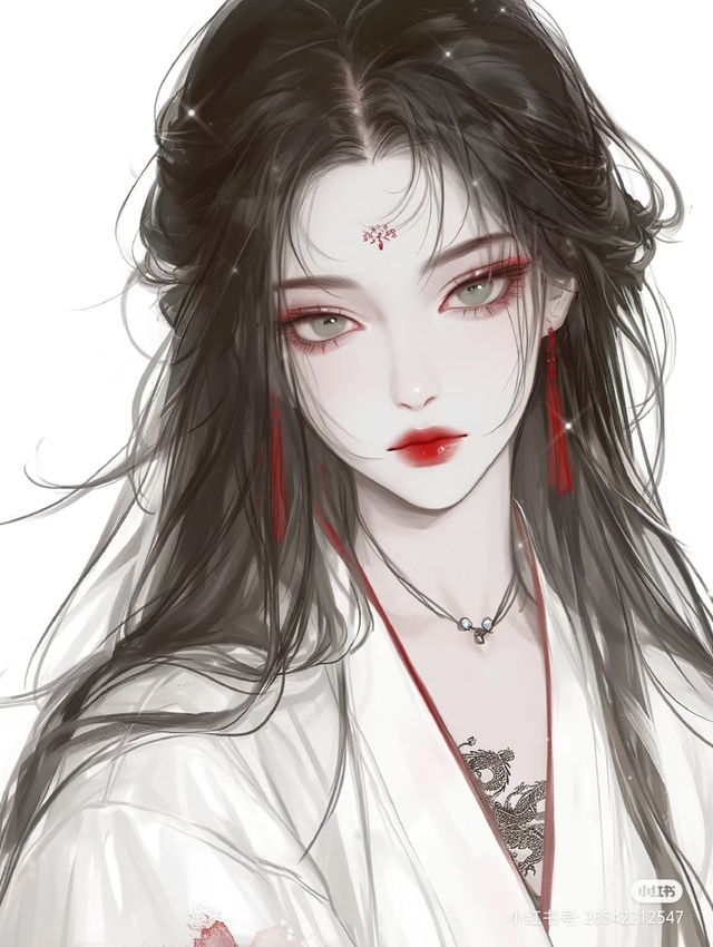 美人身着华美古装,面容精致充满攻击性,额间独特的花纹让她看着凌厉又神秘。