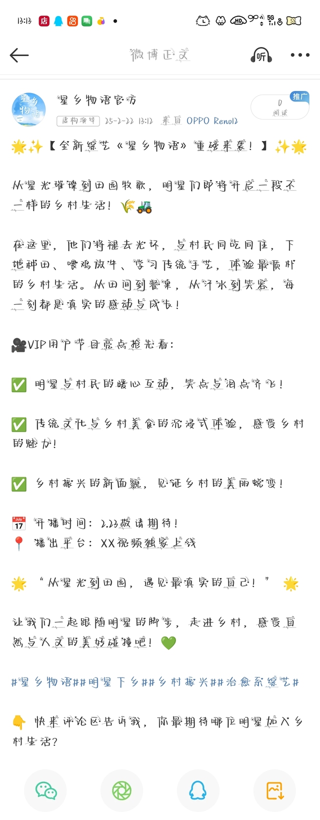 👇 快来评论区告诉我们,你最期待哪位明星加入这段特别的乡村之旅呢?